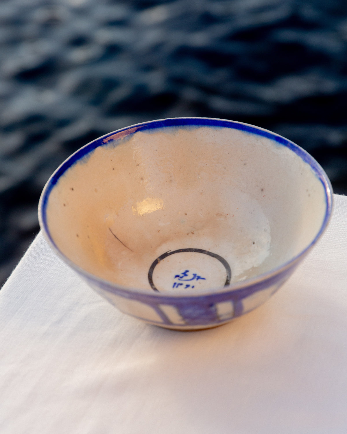 Crafted by Kashan potters during the late Safavid period (c. 1700s), this collection of bowls features the Persian invention of under glaze painting with cobalt blue ore. The bleeding quality reflects a Silk Road intermingling of influences between Chinese ceramics and the development of fine pottery in the Islamic World. The result is a wash of deep blue color, distinctive and visually dramatic.