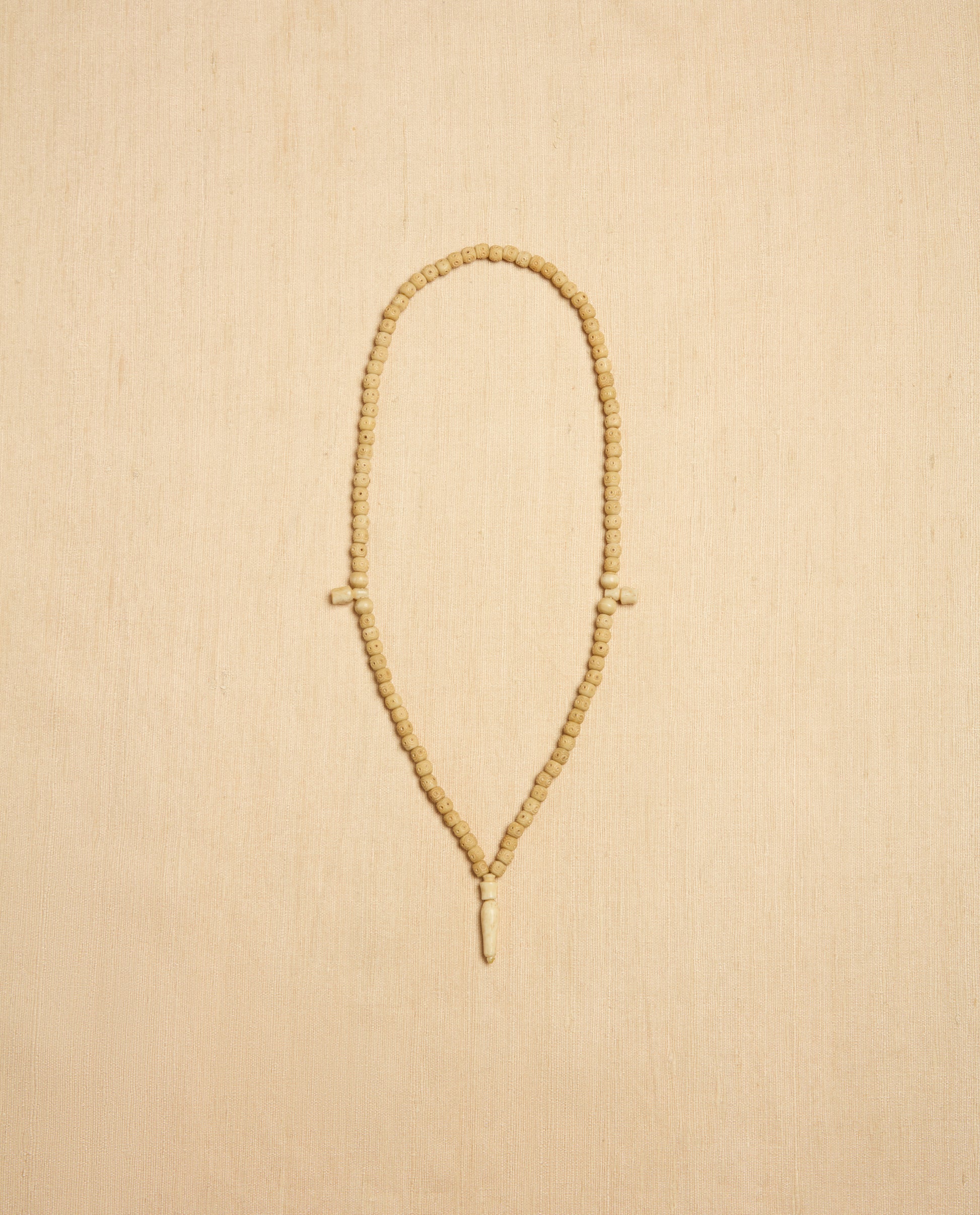 The Ancora collection comprises 25 refurbished tasbih prayer beads collected throughout the Levant - from Cairo to Istanbul. This long necklace features antique bone beads.
