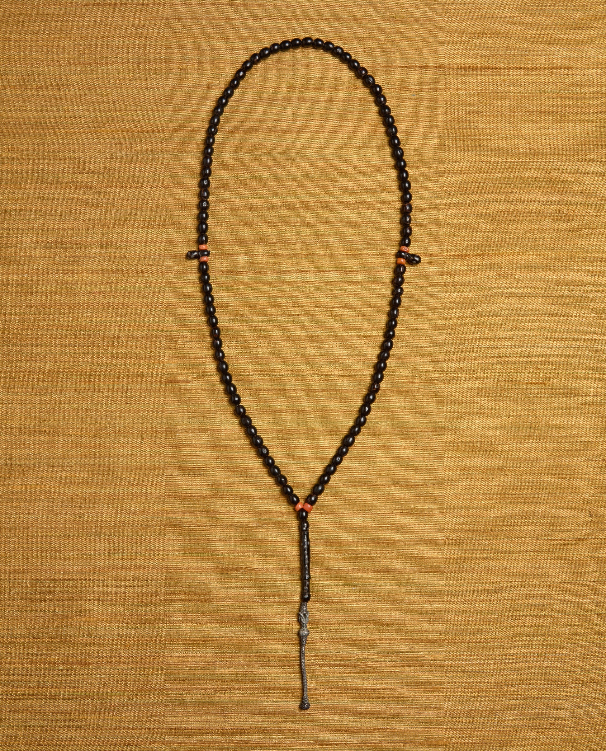 The Ancora collection comprises 25 refurbished tasbih prayer beads collected throughout the Levant - from Cairo to Istanbul. This necklace features beads crafted from rare black coral, with an antique silver tassel dating to the Ottoman period.