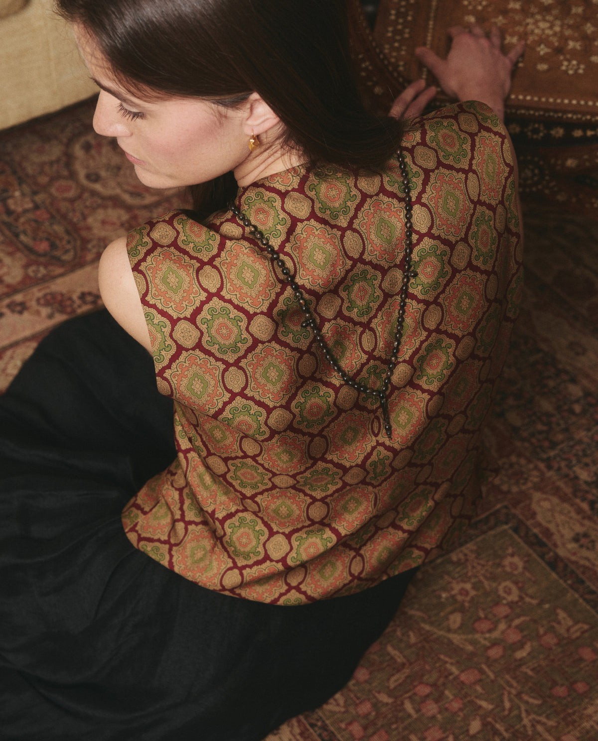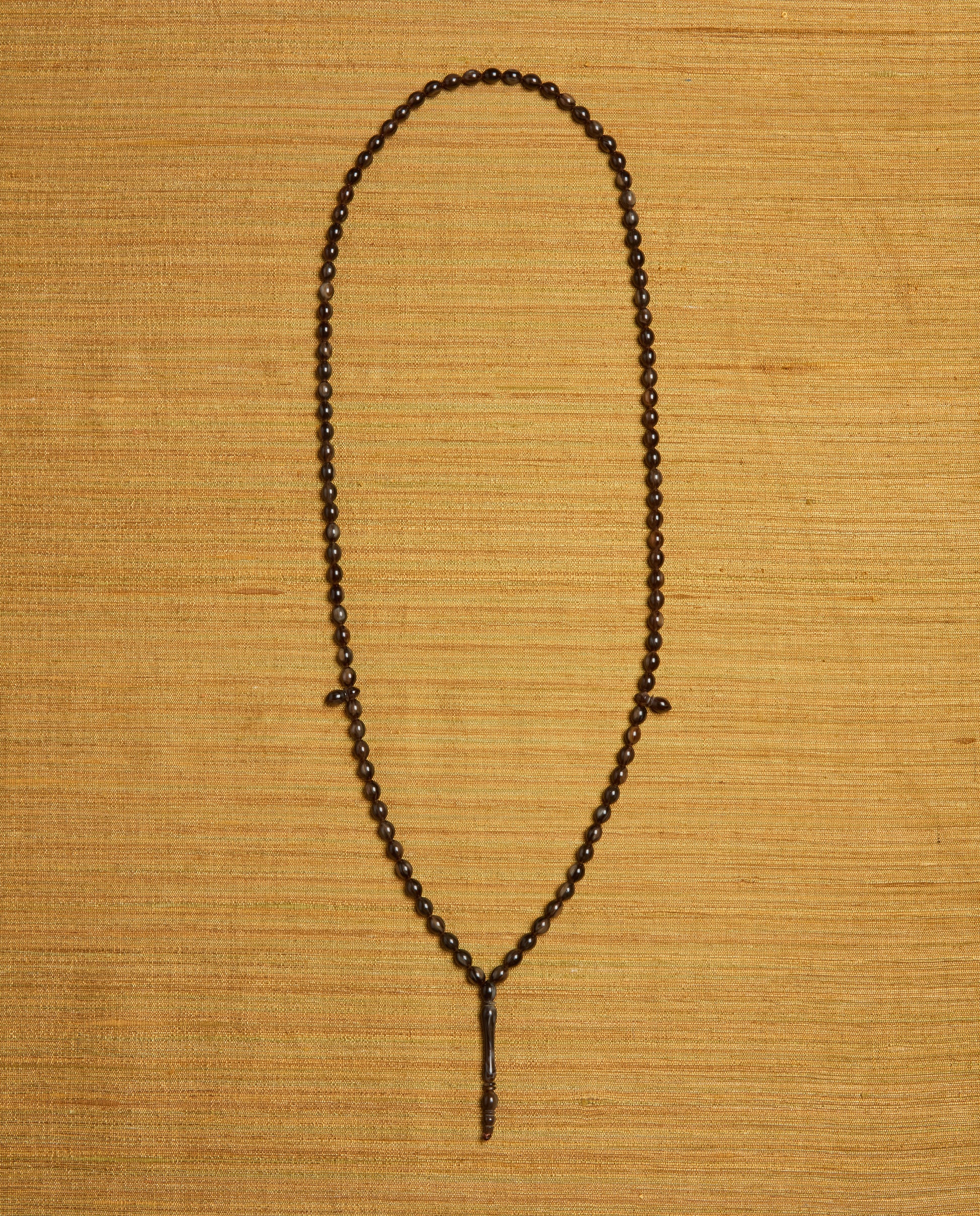 The Ancora collection comprises 25 refurbished tasbih prayer beads collected throughout the Levant - from Cairo to Istanbul. This necklace features beads in dark brown resin.