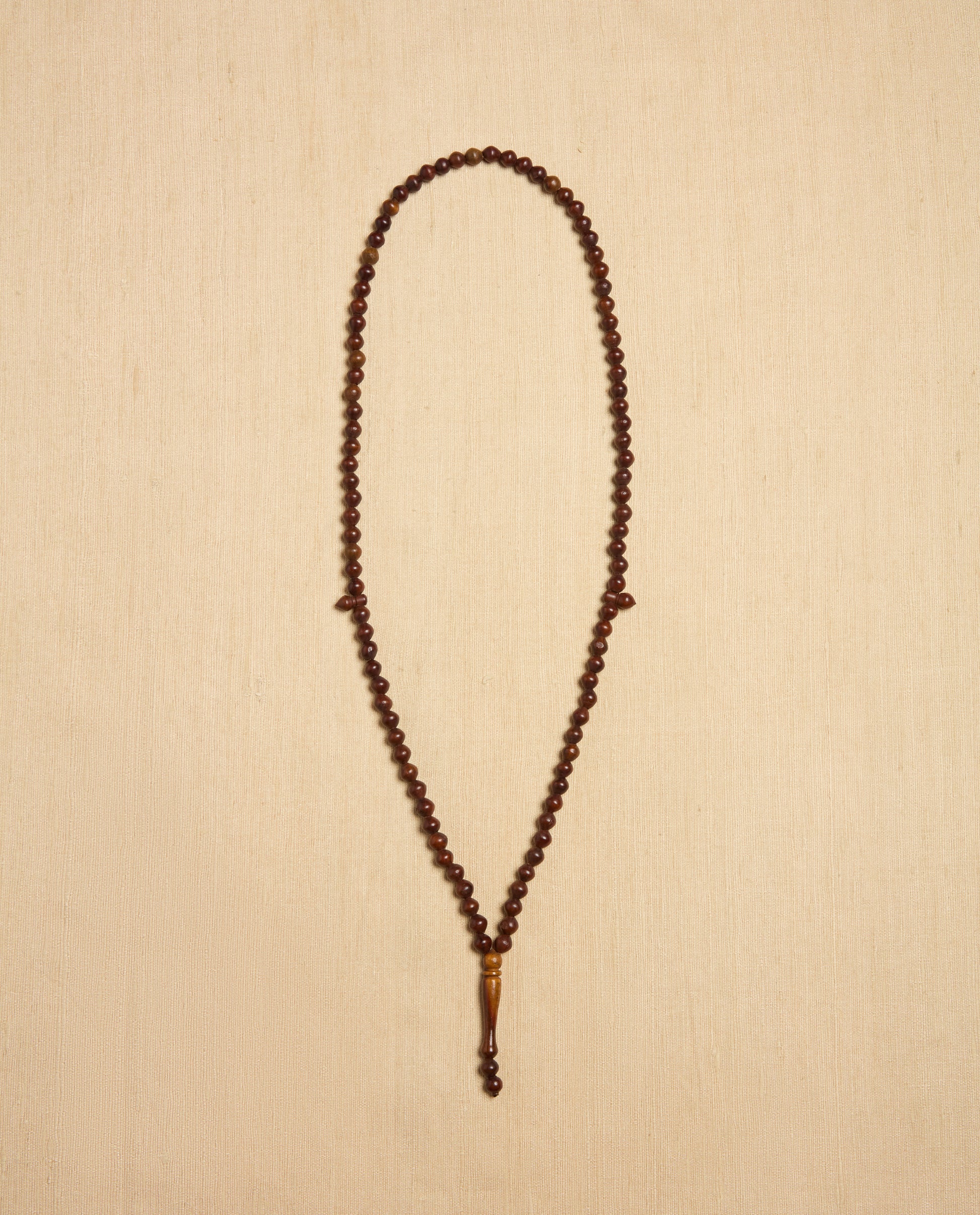 The Ancora collection comprises 25 refurbished tasbih prayer beads collected throughout the Levant - from Cairo to Istanbul. This collar features beads crafted from the nut of a palm tree.