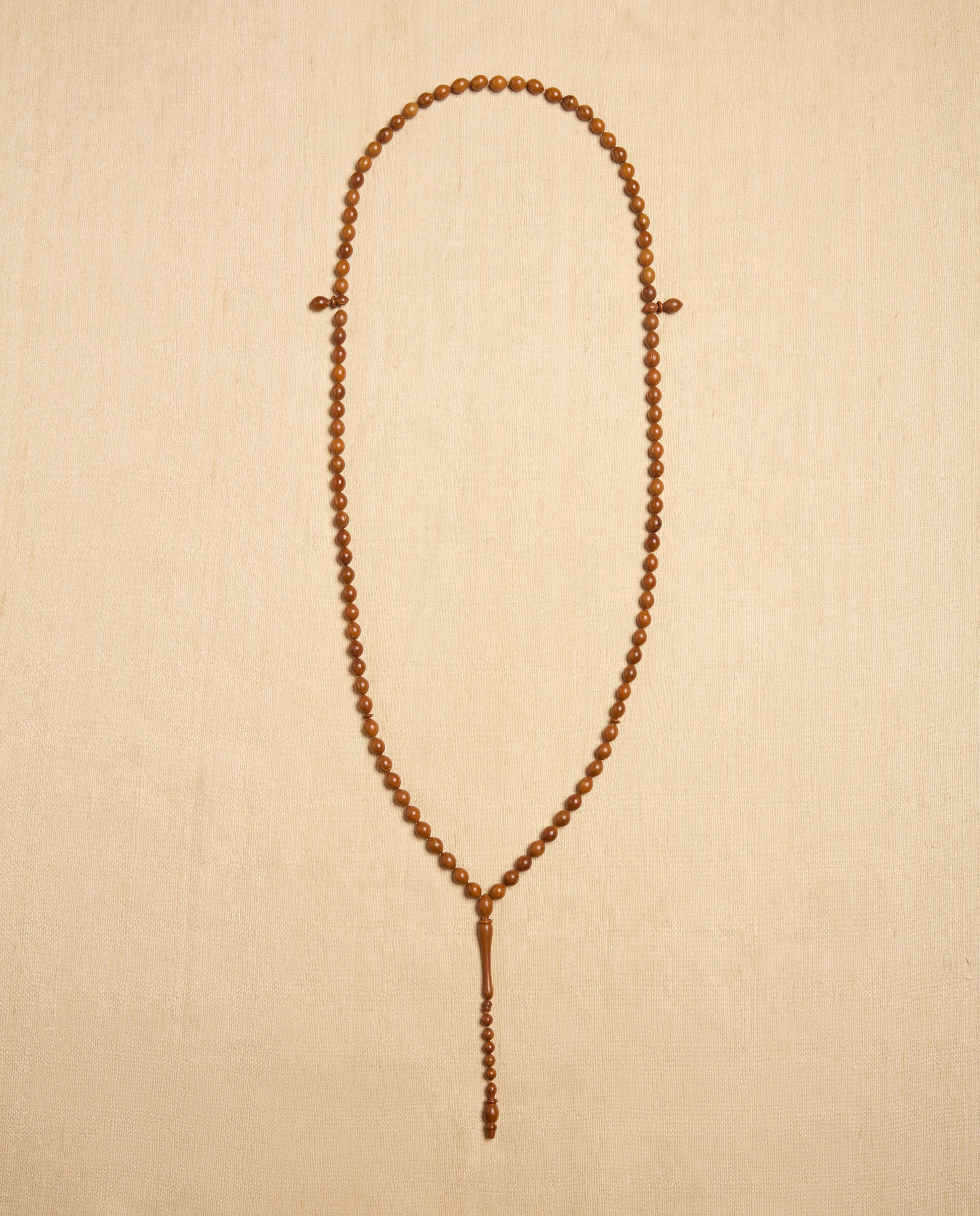 The Ancora collection comprises 25 refurbished tasbih prayer beads collected throughout the Levant - from Cairo to Istanbul. This necklace features beads crafted from the nut of a palm tree.