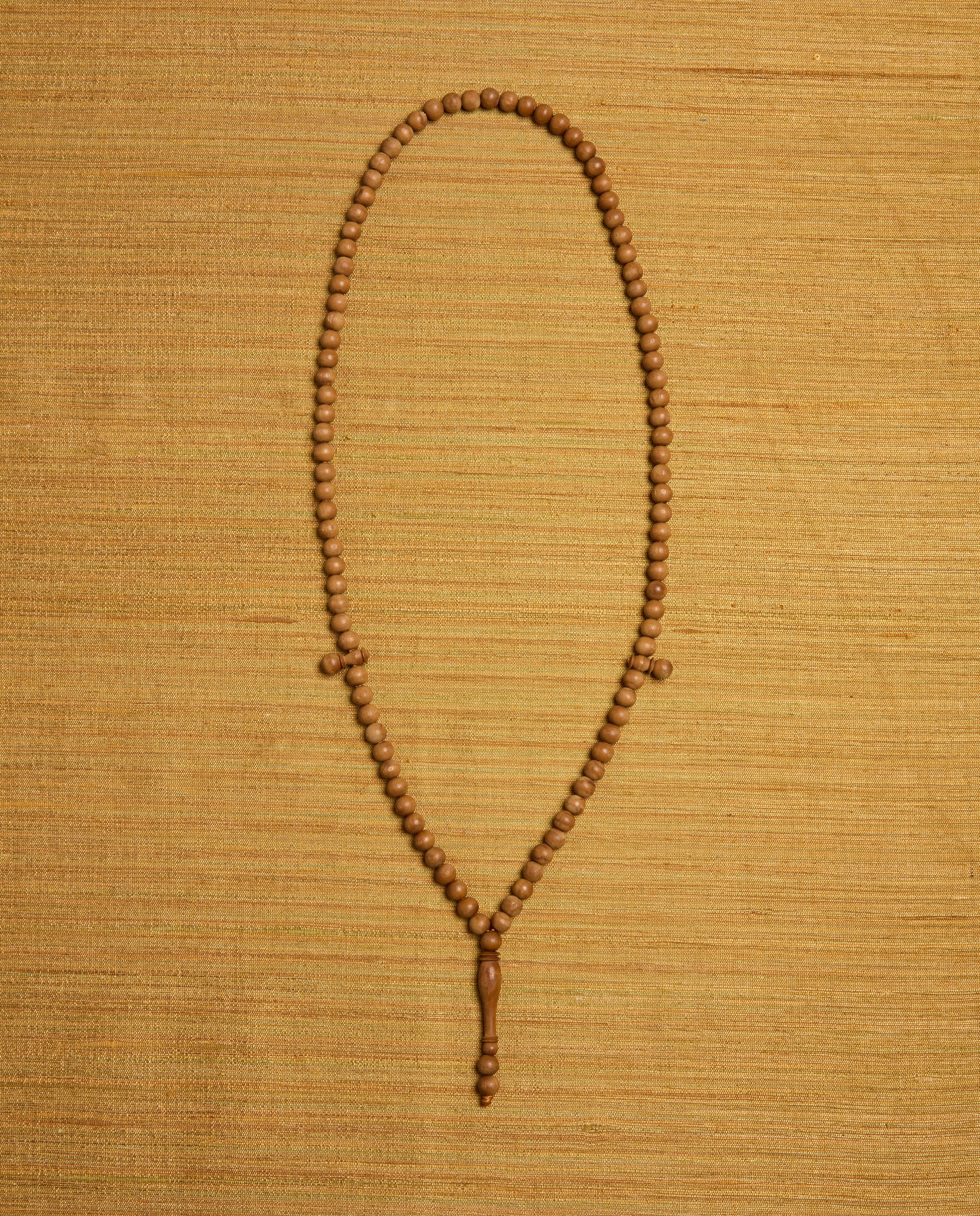 The Ancora collection comprises 25 refurbished tasbih prayer beads collected throughout the Levant - from Cairo to Istanbul. This necklace features beads crafted from sandalwood.