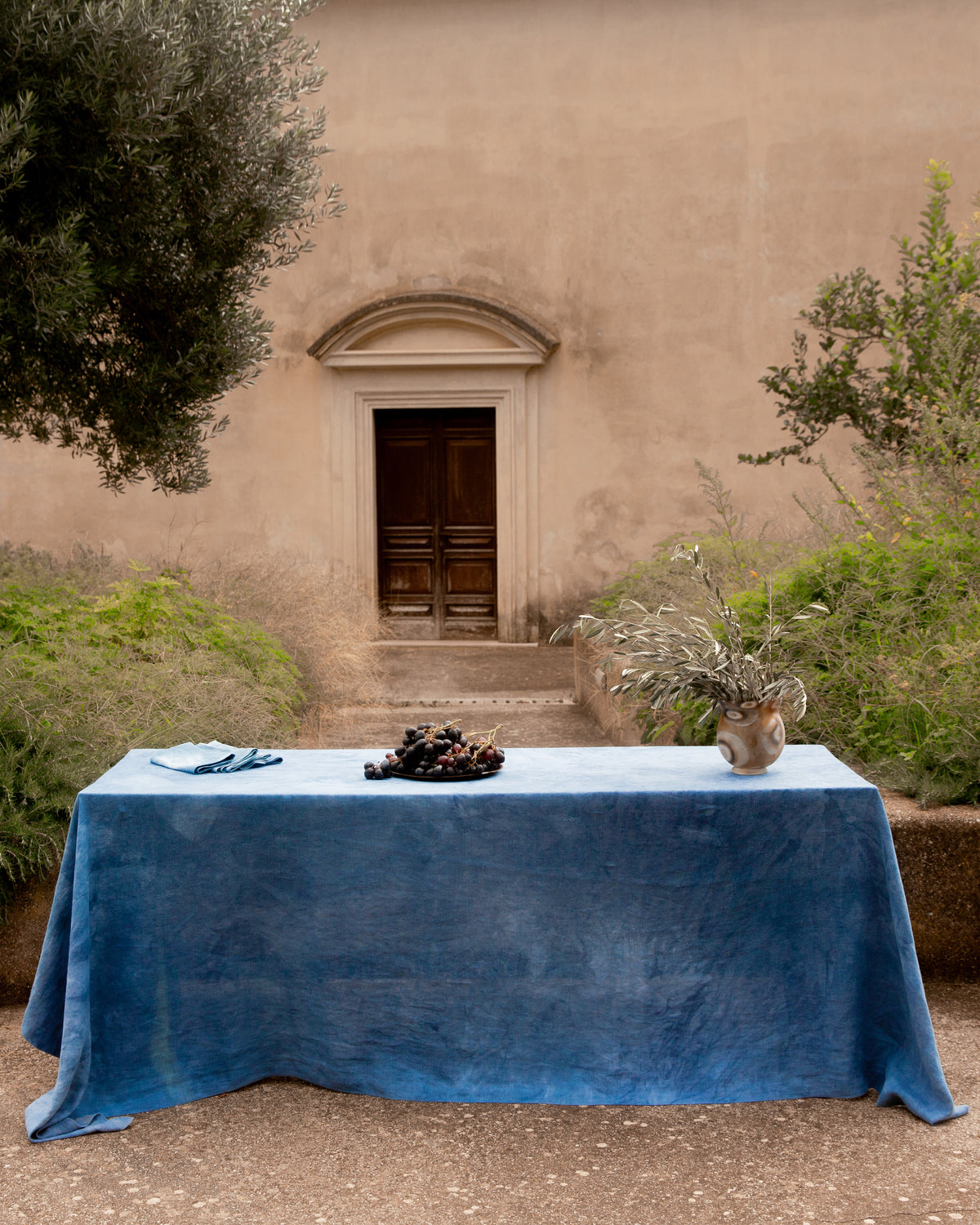 Crafted from Belgian linen in an indigo shade, the Assos Tablecloth is piece-dyed in a seaside town on Turkey's Aegean coast. Owing to the natural process, each piece is entirely unique, producing various effects that conjure the cool blues of summertime on the Mediterranean.
