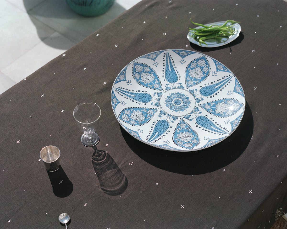 Named after the artist employed by Ottoman Sultan Mehmed II and the father of Iznik artistry, Baba Nakkas, the Baba platter is a 15th century design recreated and reimagined by a historic workshop in Iznik, Turkey, once the center of ceramic production during the Ottoman Empire. This hand-painted platter, accented by alternating teardrop motifs and stylized Cyprus trees, is characteristic of the first period of Iznik production and emblematic of the designs that emerged from Imperial court patronage.