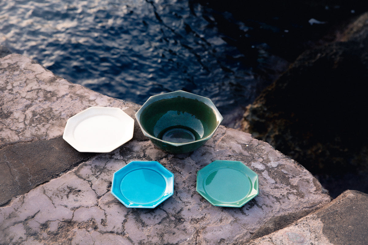 The Gobi Serving Bowl is an ode to the confluence of decorative elements brought about by trade on the ancient Silk Road – from the Gobi Desert to the shores of the Mediterranean. This generous ceramic bowl features an octagonal shape set on a slight base. Handmade in Istanbul, Turkey.