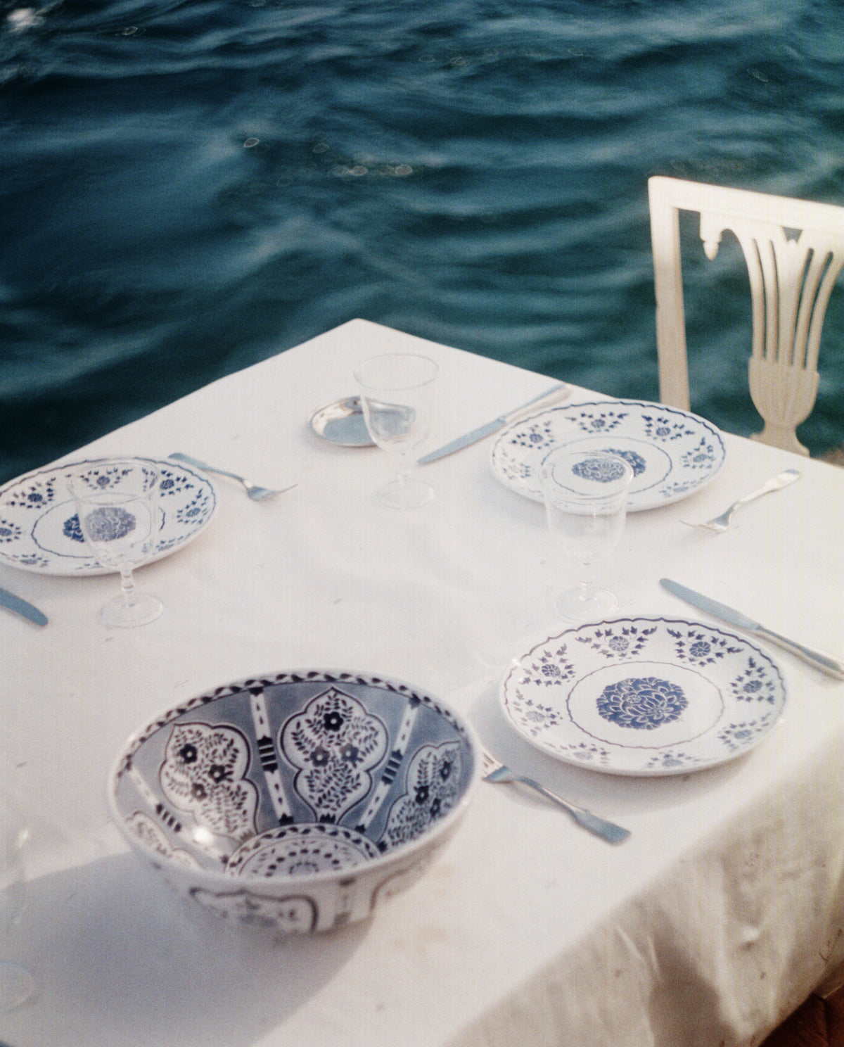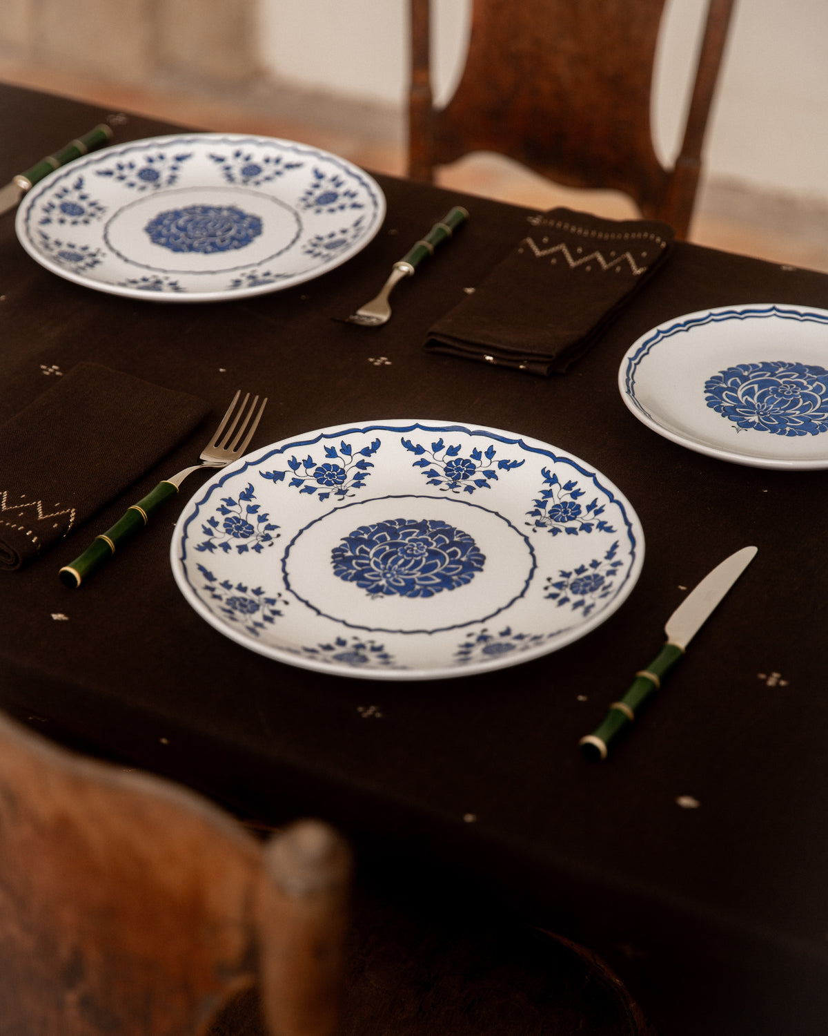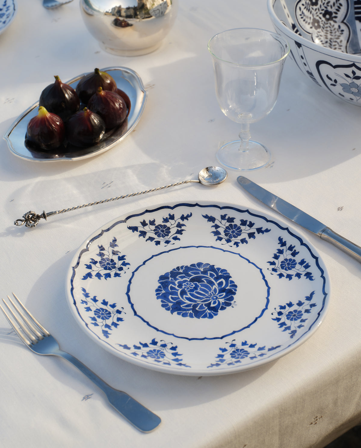 The Lotus plate is inspired by 16th century Iznik designs that were heavily influenced by blue and white Chinese wares imported into the Ottoman Empire. Reimagined with strong ties to the original motif and hand-painted by master artisans in Iznik, Turkey, the Lotus plate features a central lotus motif, framed by a border of florals with an elegant arabesque trim.