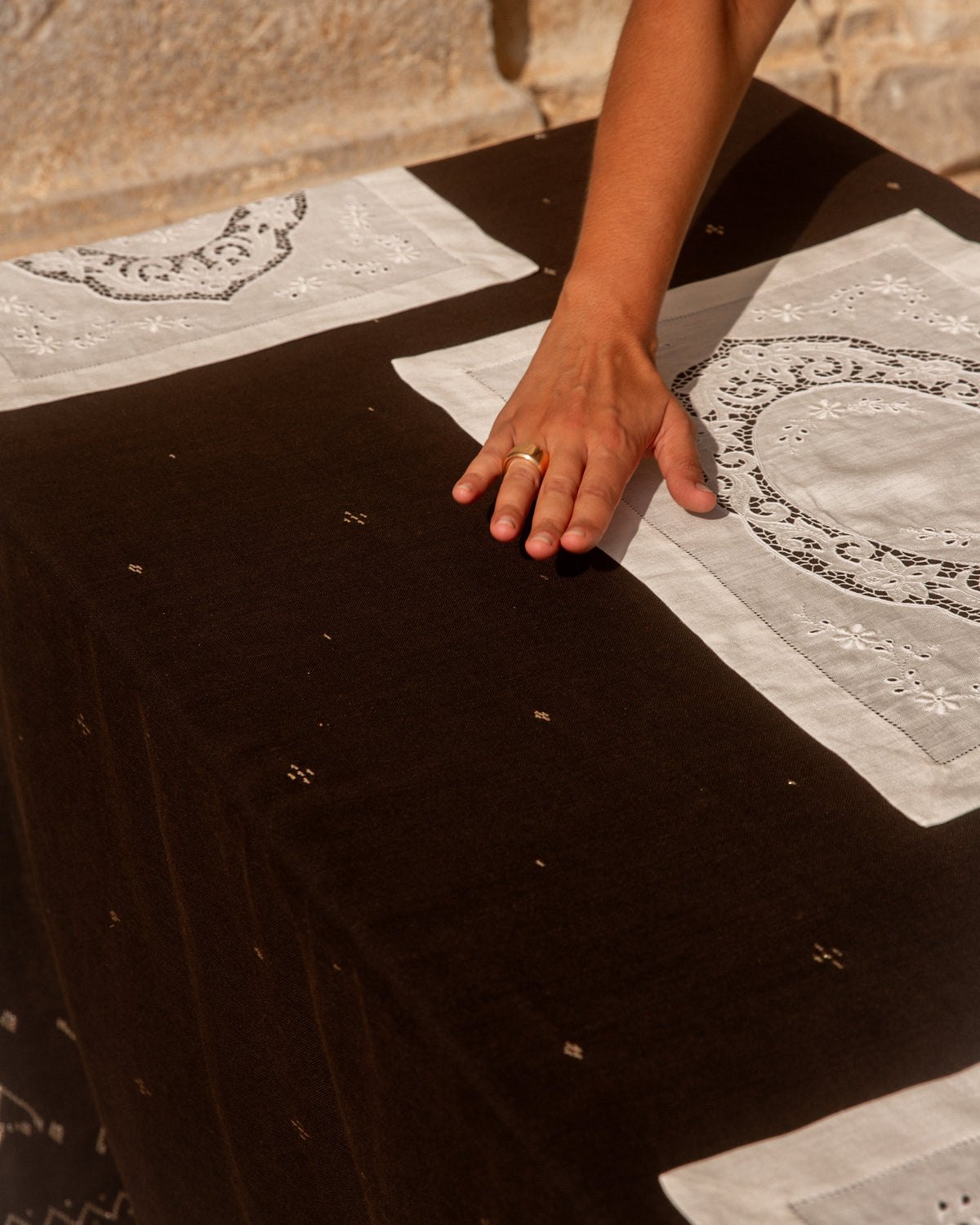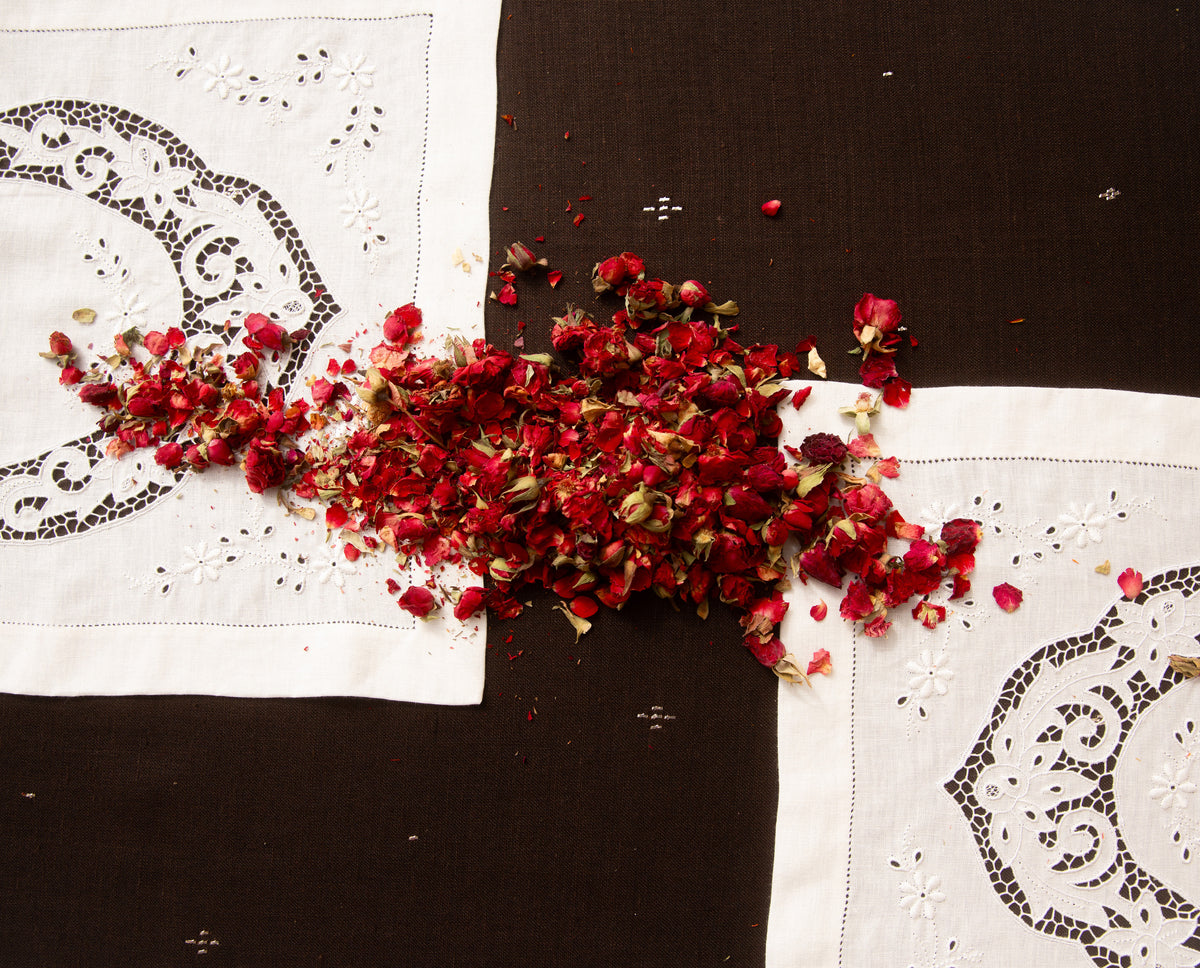 Handmade in a historic atelier in Istanbul, the Vizier placemat takes arabesque shapes to lace, emulating the lace finery of the Ottoman courts that became popular during the years of the Franco-Ottoman alliance. Made with Belgian linen.